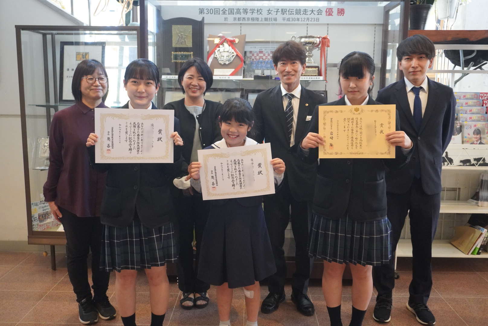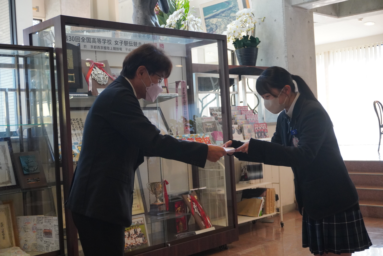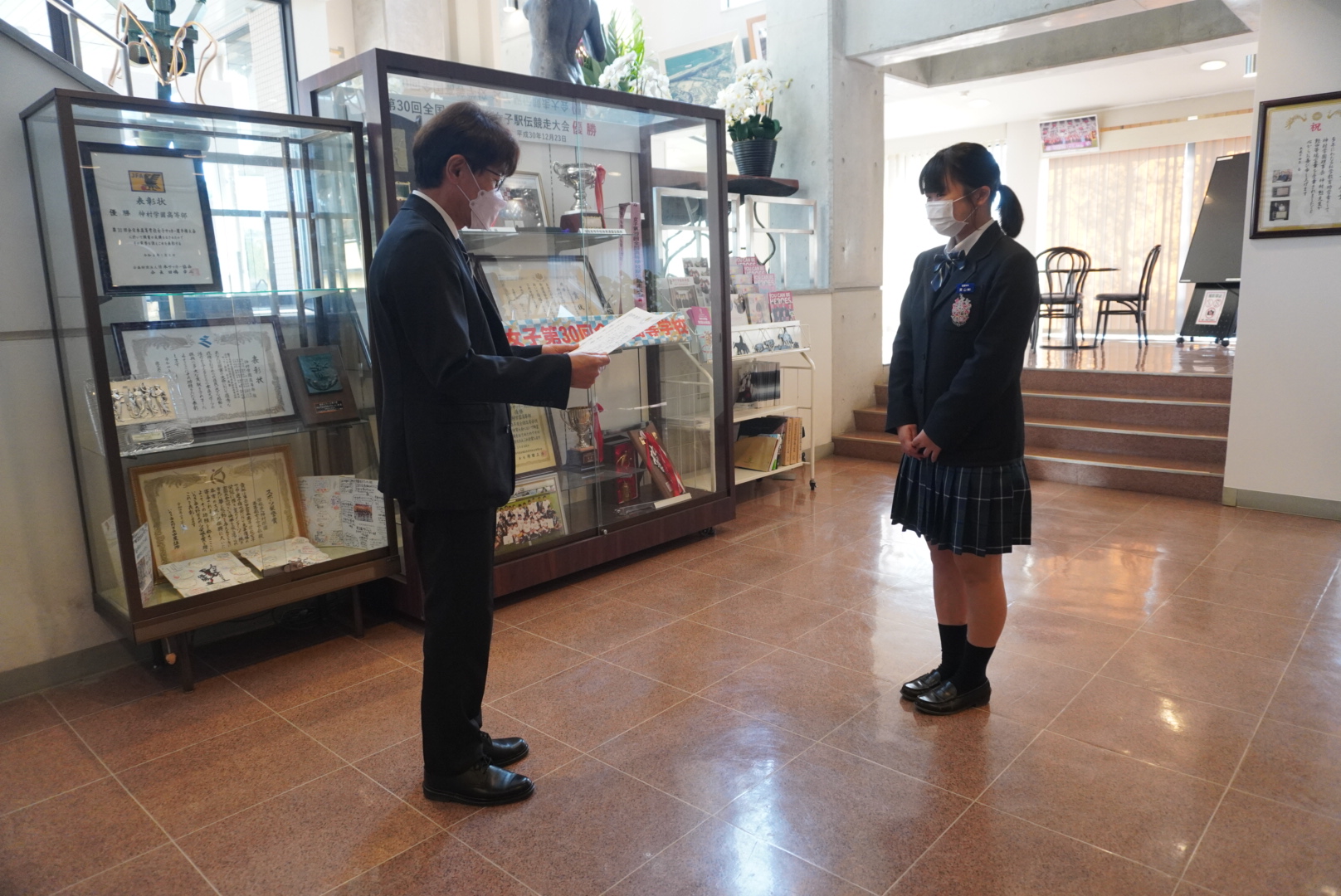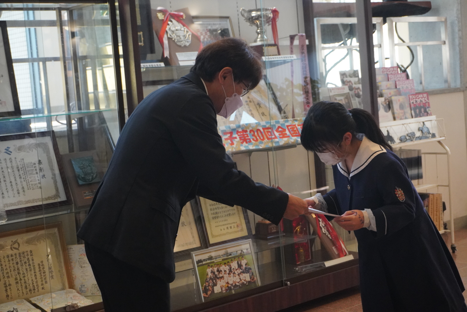 【初等部・高等部】税の作文・書道コンクール表彰式🏅 2022.11.16学園共通 お知らせ 伊集院税務署より来校いただき,税に関する作文・書道のコンクールの表彰式が行われました。書道の部で初等部1名,作文の部で高等部2名受賞いたしました。おめでとうございます。