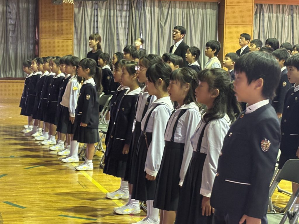 11/1(土)神村学園創立70周年記念式典が行われました。初等部からは,6年生が代表して式典に参加しました。1~5年生児童は,初等部体育館にてLIVE配信を視聴して70周年を一緒にお祝いしました。これまでの先輩方から脈々と引き継がれてきた神村学園の伝統を初等部の児童も引き継ぎ,さらなる発展に貢献してくれることを願っています。