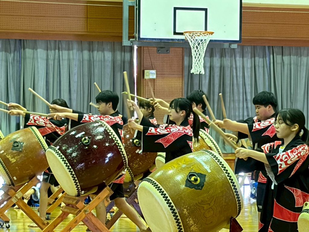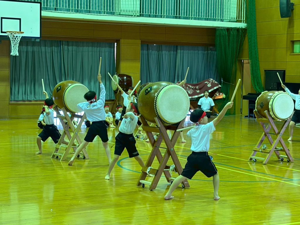1年間の学習成果としての展示発表。各学年で練習してきた太鼓発表。