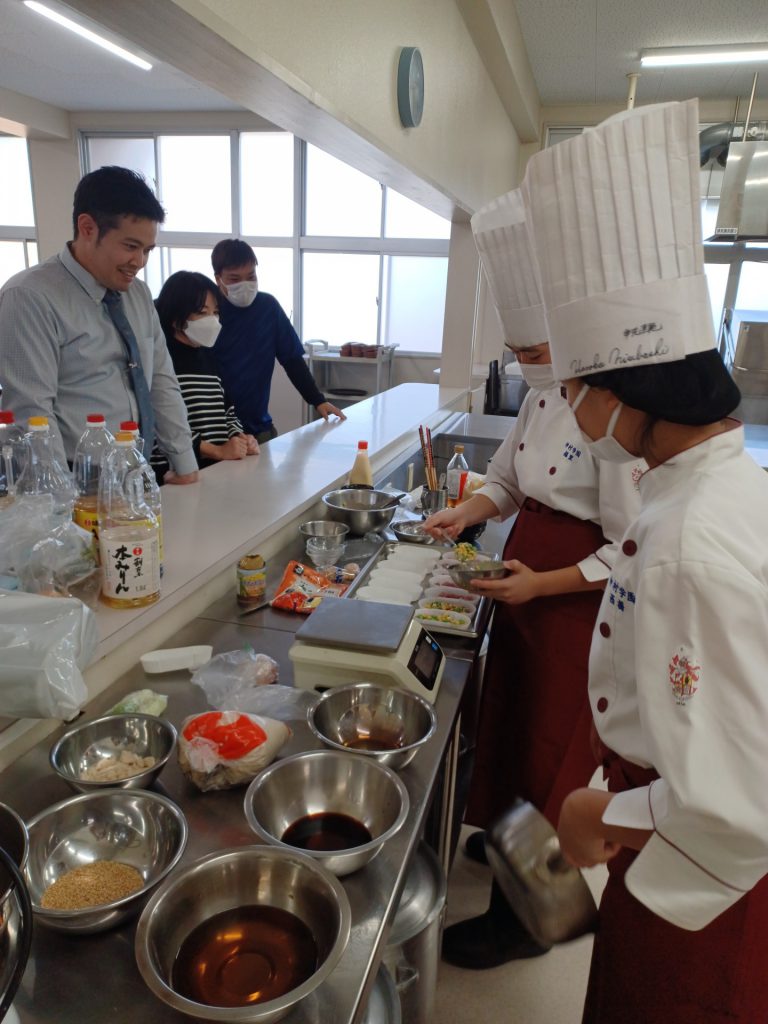 いちき串木野市給食センター栄養士さんいちき串木野市の東洋食品給食担当者の方が来校し,1月に提供予定の給食メニューの試作をし,給食提供のために いろいろと検討しました。本校まで足を運んでくださり,ありがとうございます。