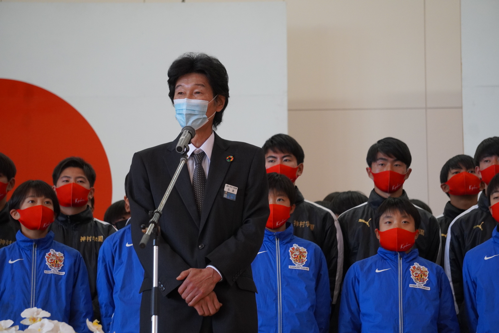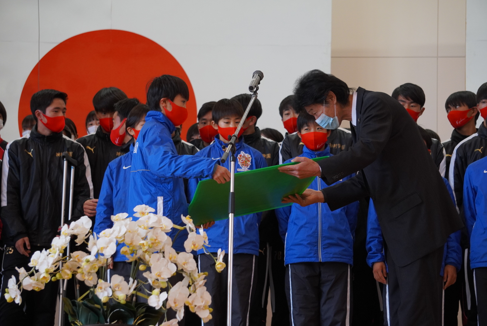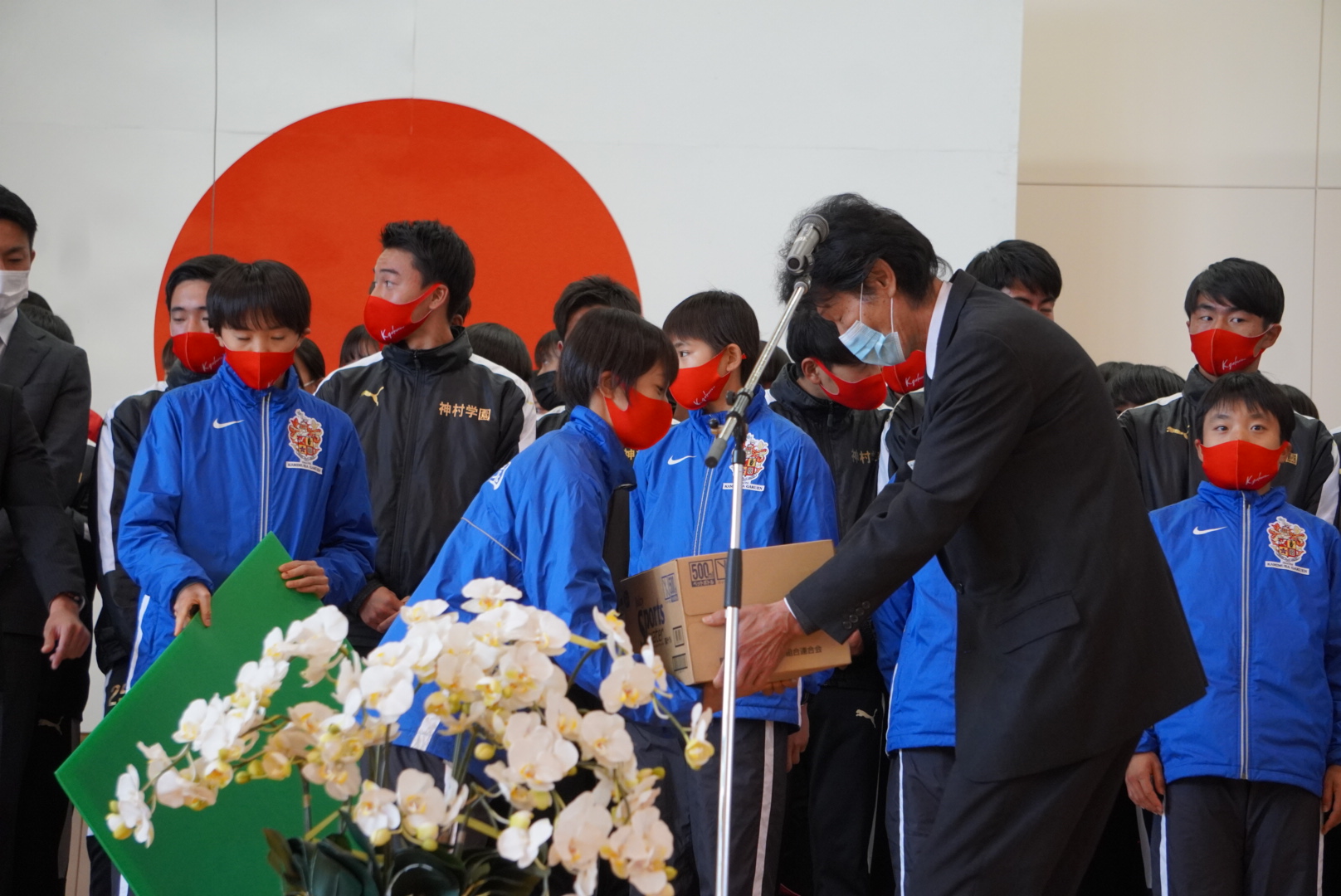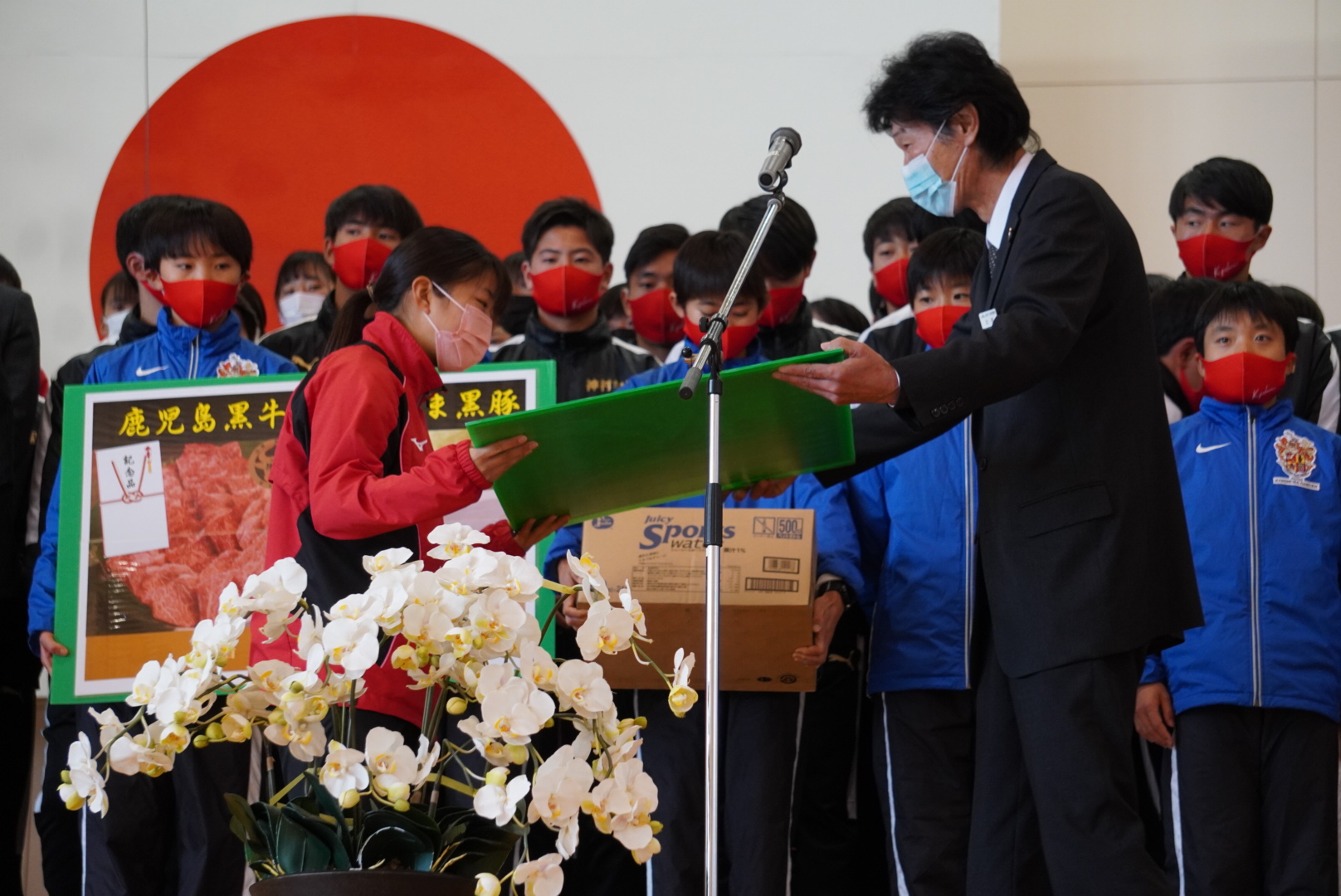JAさつま日置様より 農畜産物贈呈式🥩 2021.12.14高等部 お知らせ吹奏楽女子サッカー女子ソフトボール男子サッカー駅伝 全国大会に出場する5団体(駅伝部,男子サッカー部,女子サッカー部,吹奏楽部,ソフト部)に対し,JAさつま日置様より農畜産物贈呈式が行われました。 栄養をしっかりとって,全国大会に挑みます。ありがとうございました。