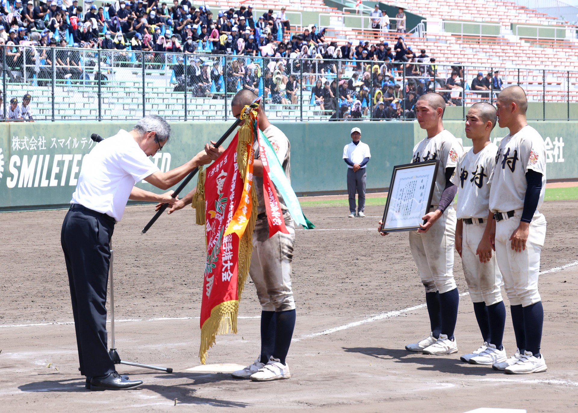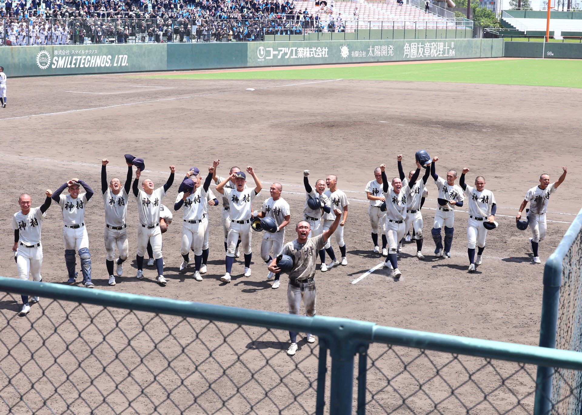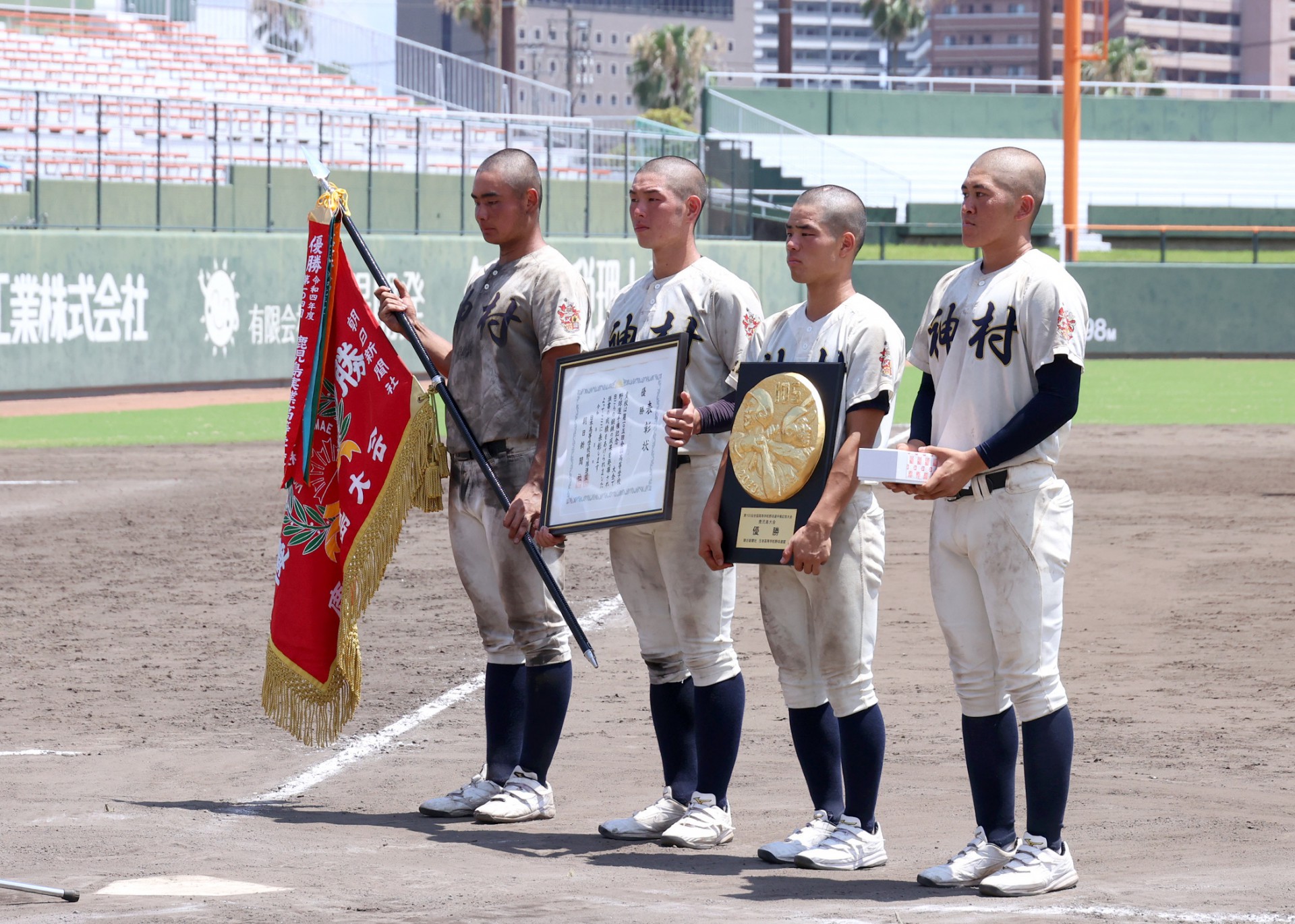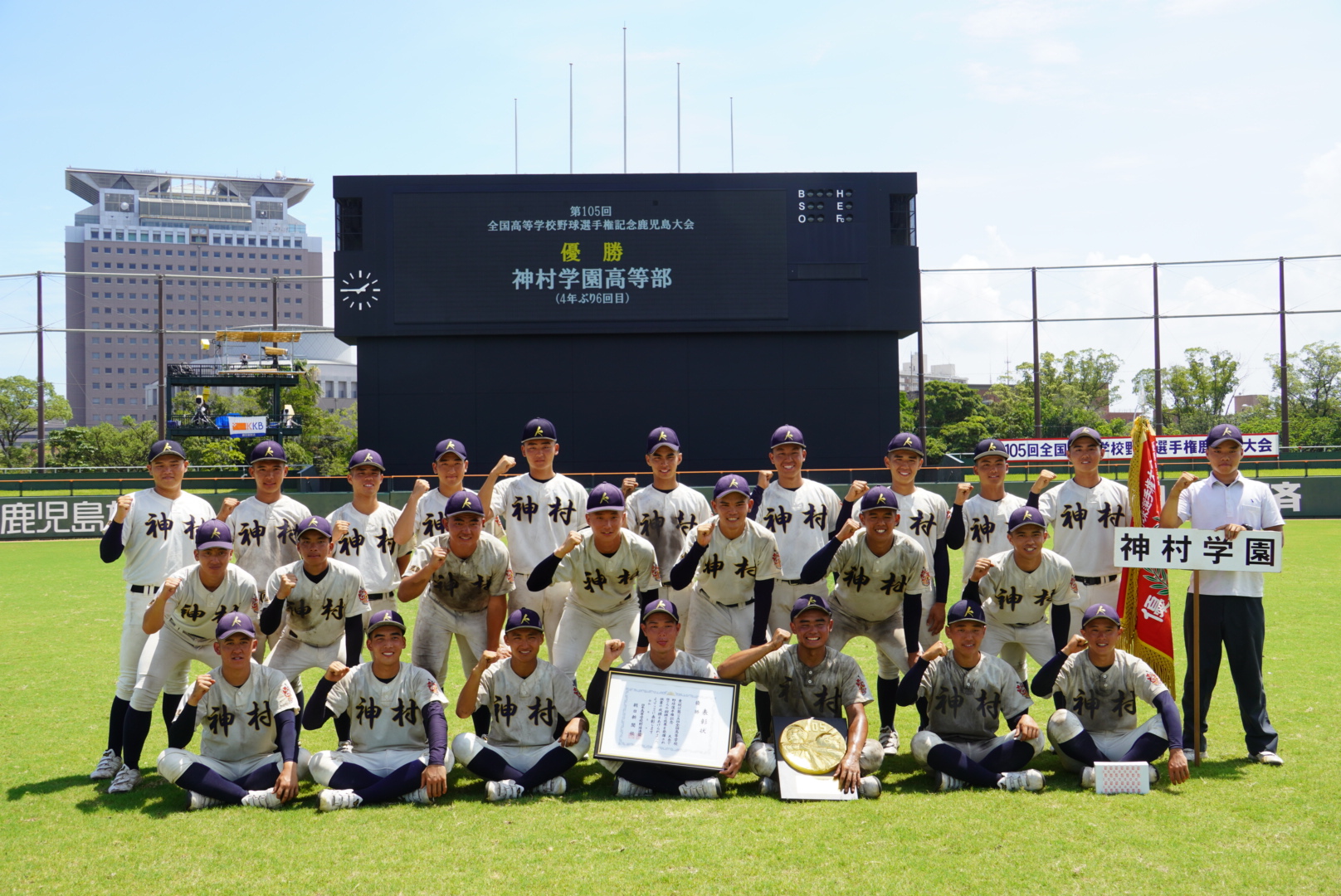 今年のチームは「気愛」のスローガンを掲げ、気迫・覇気・勇気などを全面に出す。みんなから応援されるチーム、愛されるチーム、そして仲間や家族、応援してくださる方々のために頑張れる集団になろうという思いでやってきました。 その選手たちの団結力と日々の努力が結ばれて優勝という素晴らしい結果に結びついたと思っております。 そして何より、連日猛暑の中にも関わらず、球場へ足を運んでいただき、大声援・大応援のお陰様で選手たちの背中を押していただいた事が勝利という結果に繋がったと思っております。 やはり高校野球において、応援や声援が相手にプレッシャーを与えること、プレーしている選手たちは何度も奮い立ち元気と勇気をもらえること、そしてその目に見えない形がやはり勝敗を大きく左右されると改めて実感する瞬間が何度もありました。 本当に苦しい日々、試合展開が続きましたが、皆さんの応援の力で勝たせていただきました、心から感謝しております。 8月6日から始まる第105回全国高等学校野球選手権大会でも1回でも多く、神村学園の校歌が歌えるように、そしていついかなる時も感謝の気持ちと謙虚な気持ちを忘れずに直向きに必死に練習して頑張っていきたいと思います。 本当に皆さんありがとうございました。甲子園でも引き続きよろしくお願いいたします。
