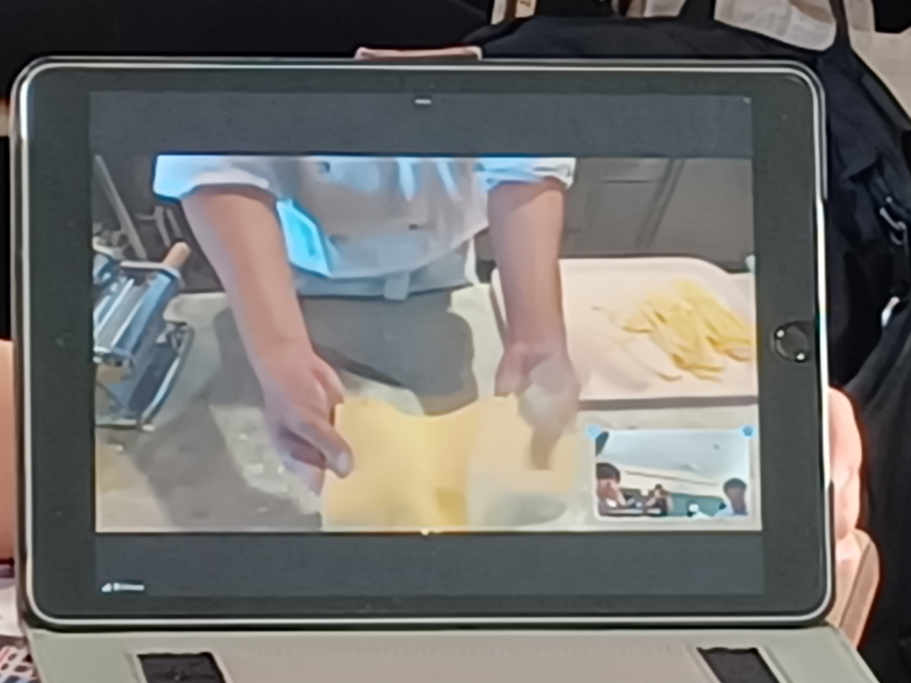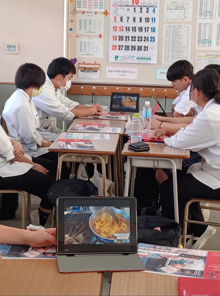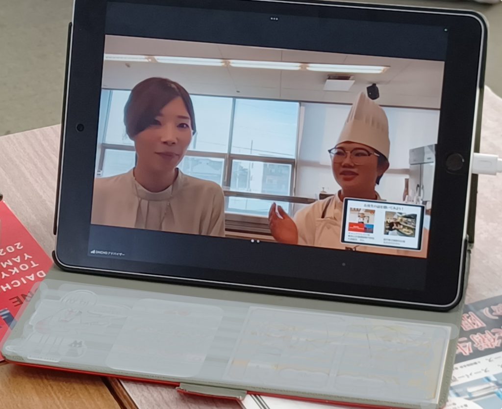 村川学園(大阪調理製菓専門学校と東京山手調理師専門学校)の先生方とオンライン授業を実施。 生徒達は各教室で,グループ毎に自分たちのタブレットで繋ぎ,オンライン講義に参加しました。