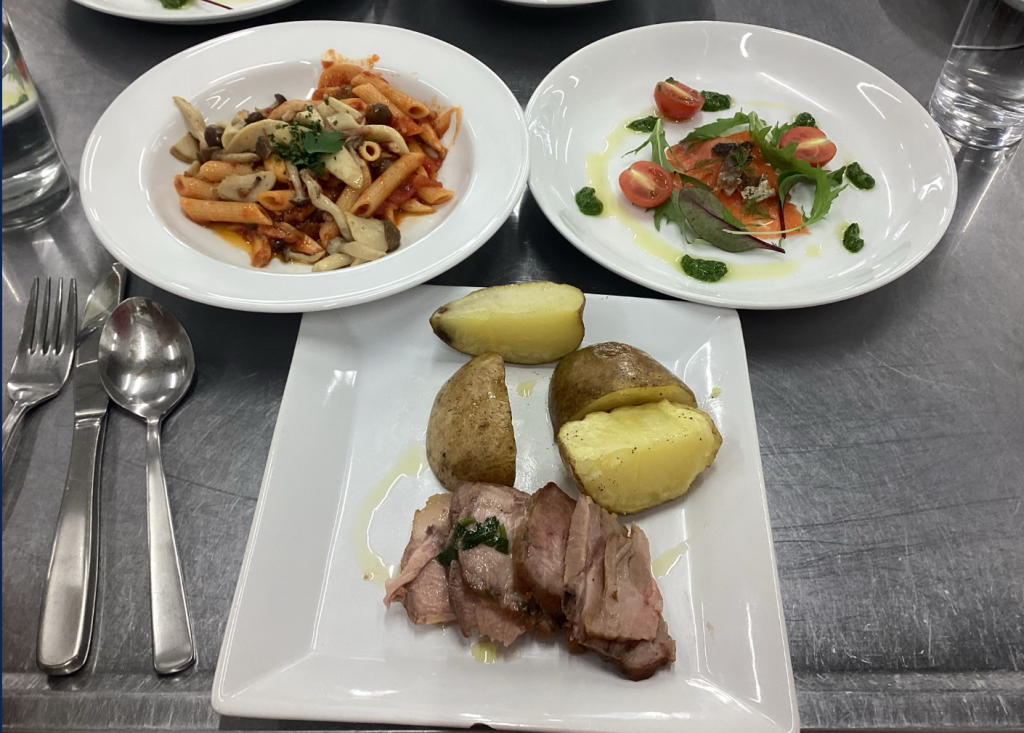 11.14 ★調理科☆調理コース2年生 特別調理実習 with 外部講師 隈元 修二先生による 特別実習 イタリアン 2025.11.14高等部 お知らせ調理科 2年生 調理コースの特別調理実習がありました。今年度オスピタリタ・ピッコロモンド隈元 修二シェフによる実習は,2回目になります。 調理実習終了後,あらためて,先生の経歴をお聞きし,将来 調理師を目指す学生として,今 調理コースにいる生徒達へどうあるべきか 特別実習で 先生から直接頂くありがたいお話 本当に貴重です。 <本日のメニュー> 霧島サーモンのグリーンソースマリネ ペンネボスカイオーラ アリスタ(豚肩ロースのロースト) トマトソース ローズマリーポテト ボネ(チョコプリン)