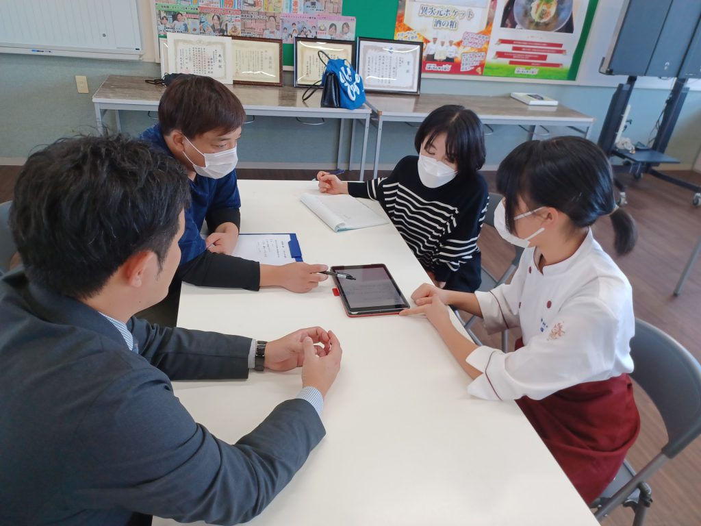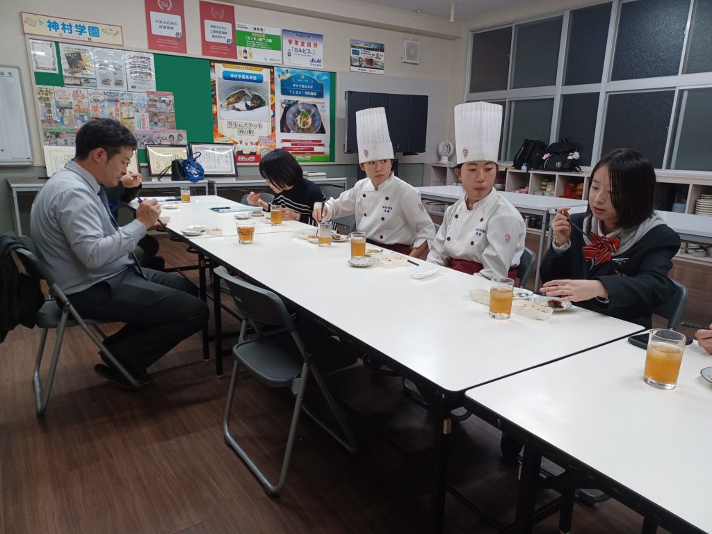 いちき串木野市給食センター栄養士さんといちき串木野市の東洋食品給食担当者の方が来校し,1月に提供予定の給食メニューの試作をし,給食提供のために いろいろと検討しました。本校まで足を運んでくださり,ありがとうございます。