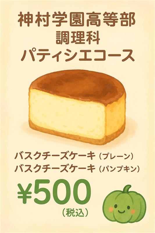 11.16 ☆調理科☆産業まつり @Fアリーナ駐車場 in いちき串木野市 今年も 出店!完売💕 2025.11.16高等部 お知らせ調理科 いちき串木野市総合観光案内所 リンク いちき串木野市HP お陰様で 完売しました。みなさま お買い上げ ありがとうございました。パティシェコースより バスクチーズケーキを販売します!⇩各500円(税込)