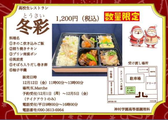 電話番号 : 090-3613-6964(ご予約締切日12月5日 16時まで)