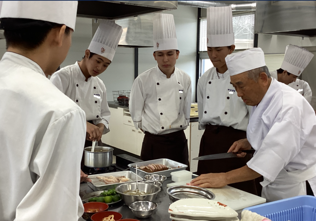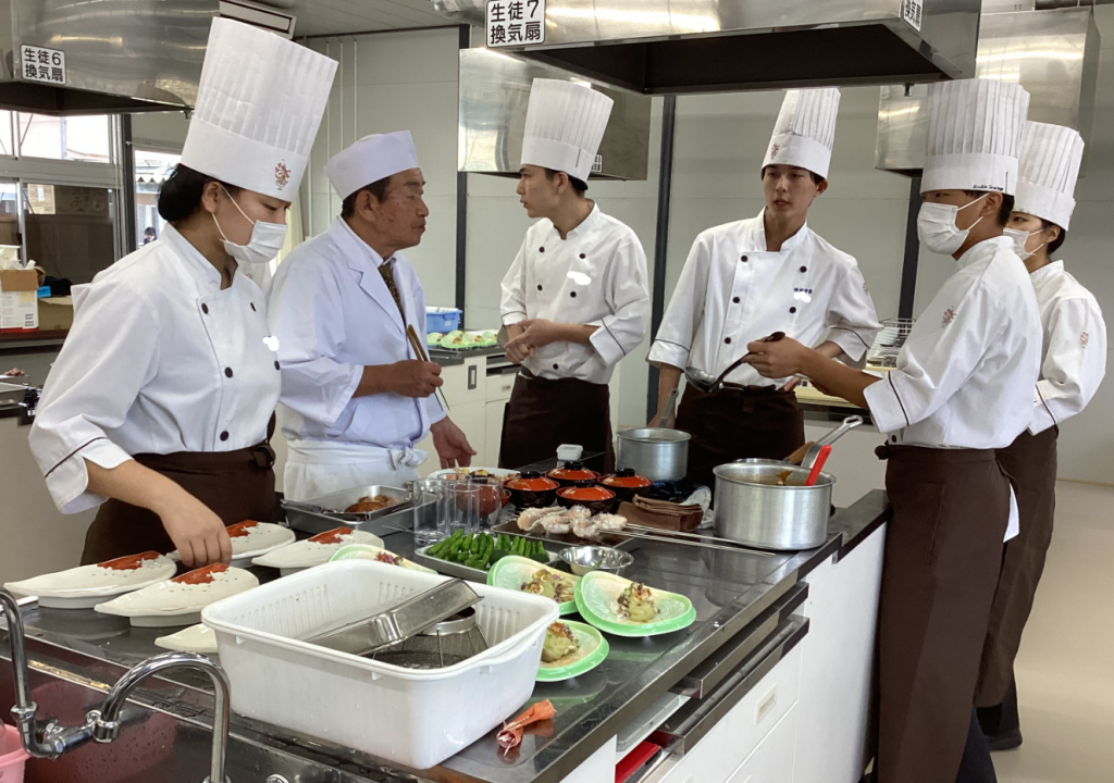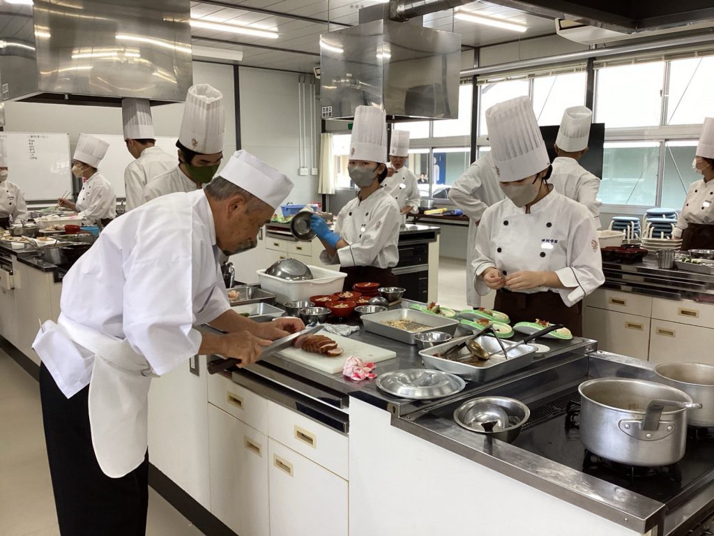 調理科では県内の卓越した技術をもった一流の先生方に実習を指導していただいています。