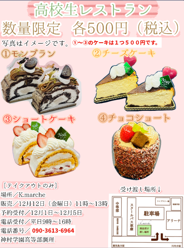電話番号 : 090-3613-6964(ご予約締切日12月5日 16時まで)