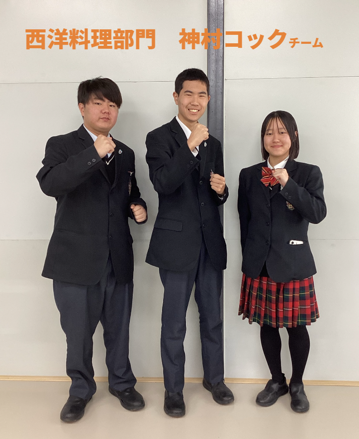 2年調理コース 児玉 悠生(甲南中)、北村 啓寛(星峯中)、内村 莉子(星峯中)