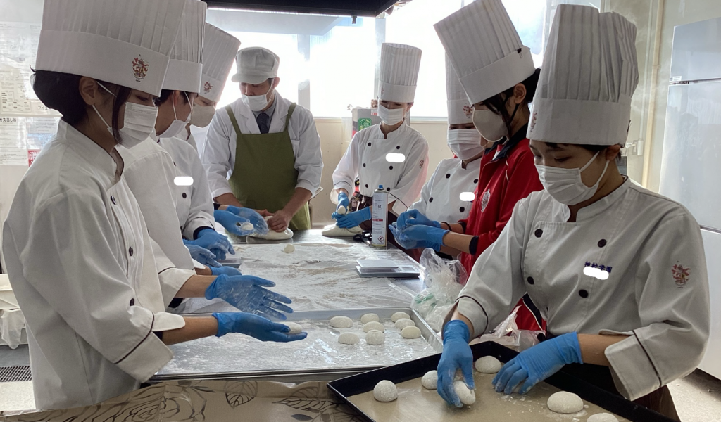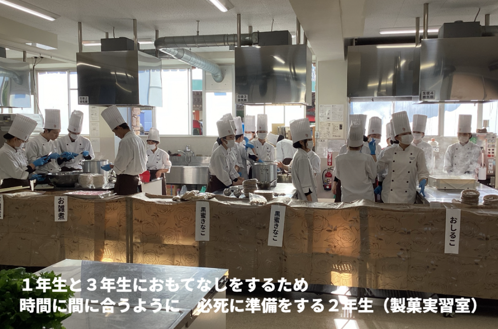 前方:パティシエコースと 後方:調理コース