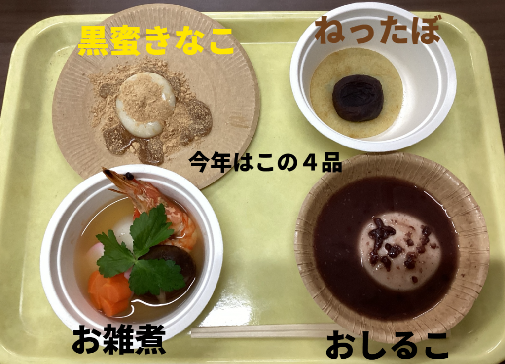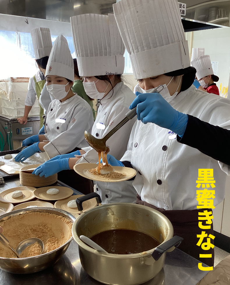 調理科生(約150人)は、冬休みの期間 お餅を使ったレシピを考え提出済み。 エントリーされたレシピは (名前を消して)壁に掲示してあります。
