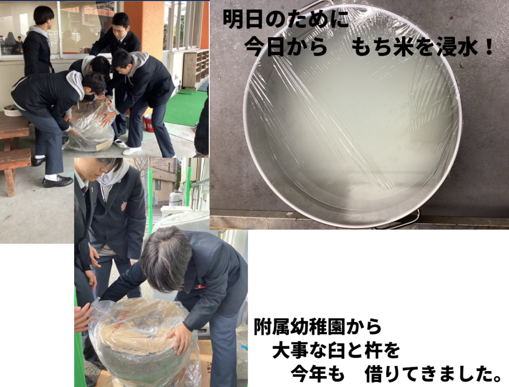 1.9 ☆調理科☆恒例 2年生による お・も・て・な・し (校内)餅つき大会 開催! 2026.01.08高等部 お知らせ調理科 明日は,調理科恒例 2年生による1,3年生+先生方へのおもてなし餅つき大会です。 1月8日(木)始業式の日に 準 備 開 始 ! 今年度のM-1グランプリ1位は、誰になるのでしょうか!? 各コースから選ばれます! 明日の餅つき大会中に,調理科全生徒・全職員で それぞれのコースの素晴らしいレシピに 1シール💮で投票します!