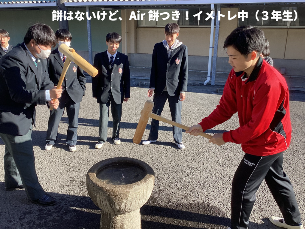 餅つき スタート!今年は、3年9組から 順番に