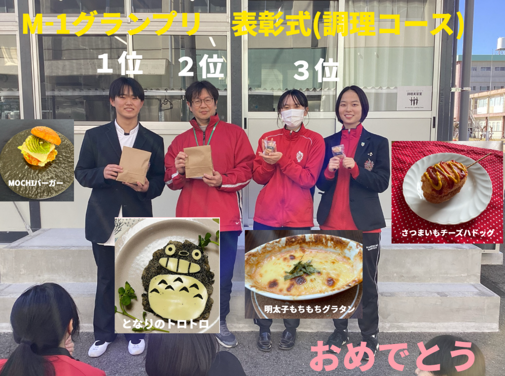 今年の調理コース80レシピ中 1位は👇2年 鏡園くん! おめでとう 👀濱﨑先生 2位 すごい! M-1グランプリ考案者