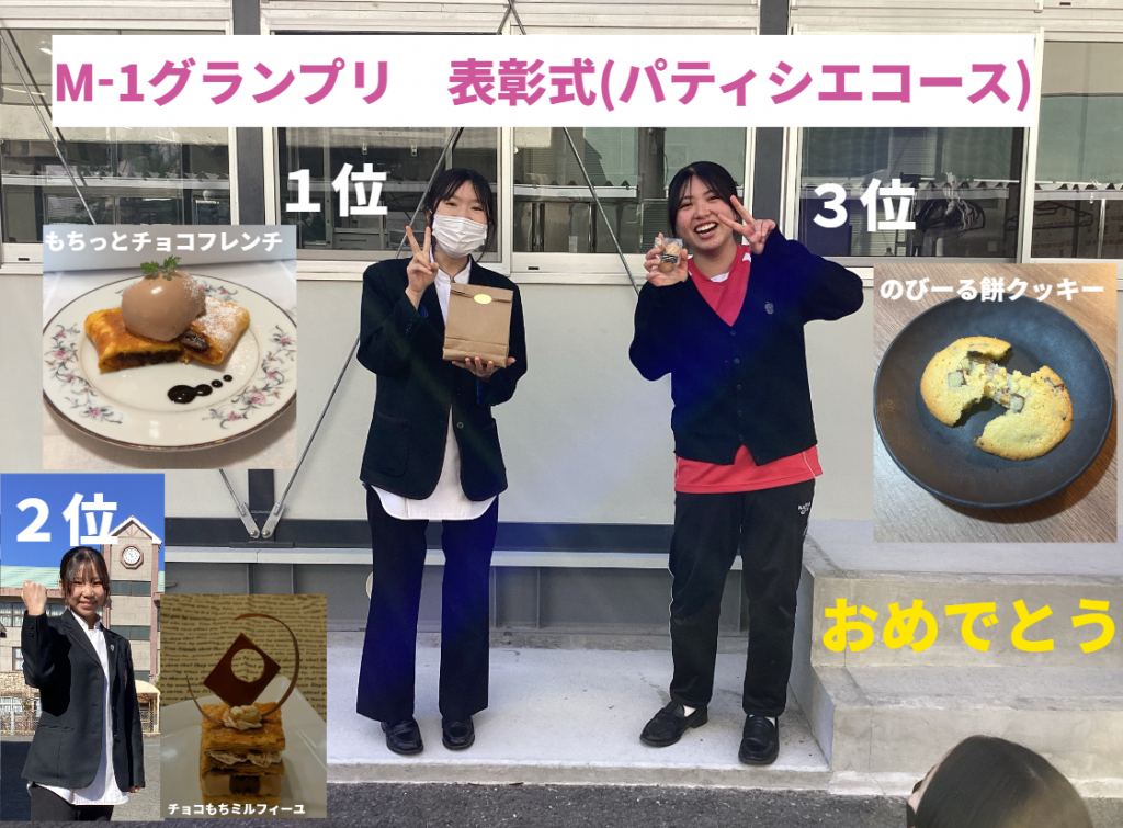 パティシエコース部門 約70レシピ中 1位は,2年 堀さんです。おめでとう💕