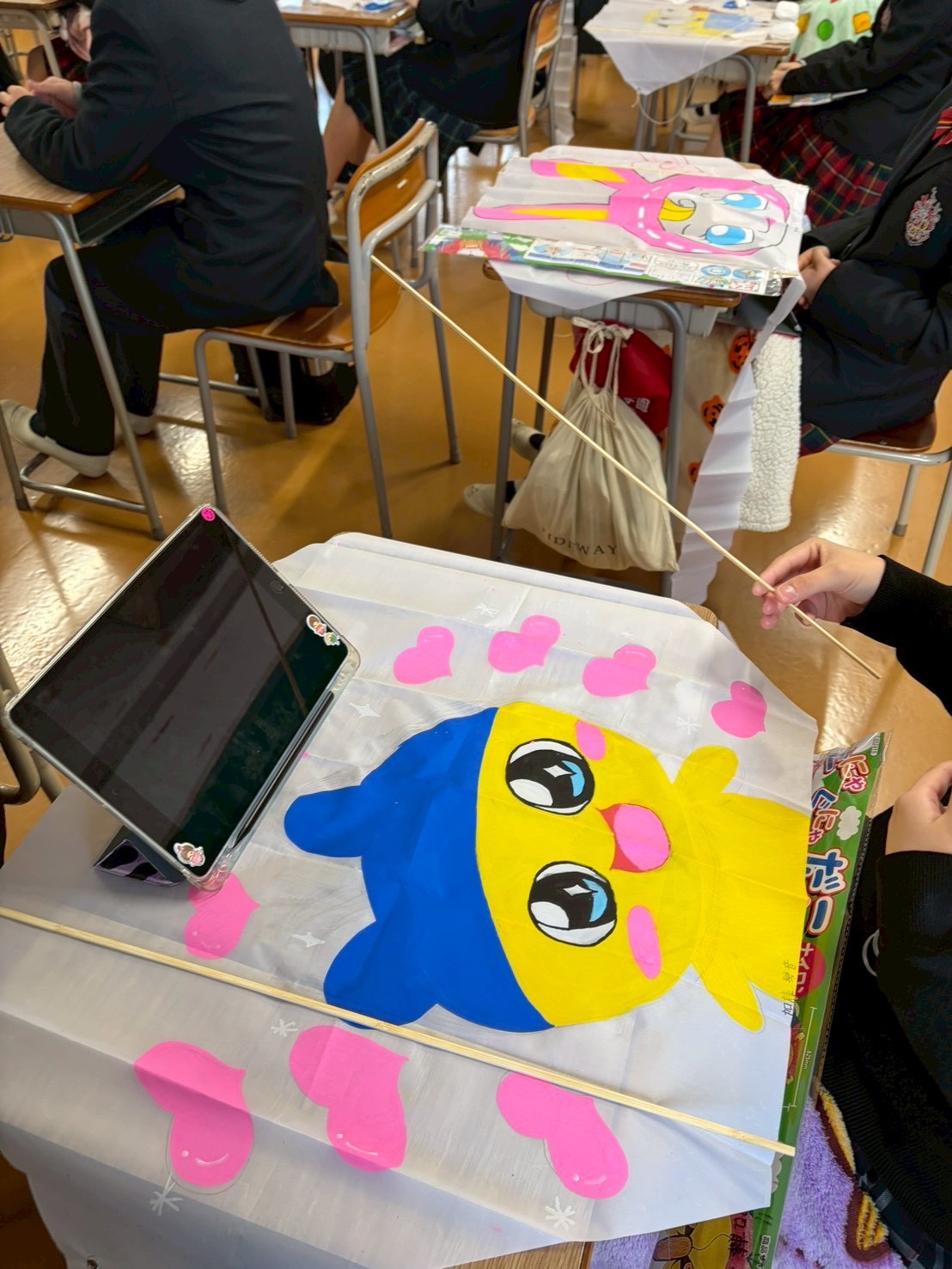 冬休みからデザインを考え、オリジナルの凧を作りました✨