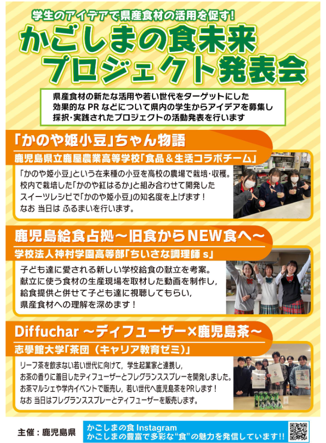 2.1(予告) ☆調理科1年生☆ちいさな調理師s KYT アオハル祭にて 発表会!@マルヤガーデンズ4F in 天文館 2026.01.26高等部 お知らせ調理科 #かごしまの食未来プロジェクト当日は,神村学園高等部 ダンス部も 出演します👇 是非 遊びに来てね!