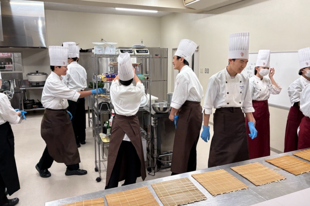 2.3 ☆調理科☆節分マルシェOPEN 調理部&パティシエ部による恵方巻&恵方ロール 校内販売 完売! 2026.02.03高等部 お知らせ調理科 2月3日(火)昼休み 節分マルシェOPEN 販売場所:ドーム内 K. Marche 販売時間: 1回目 11:50~ 2回目 12:50~ 校内の生徒・職員対象販売です! 調理部 と パティシエ部の作る恵方巻と恵方ロールを それぞれ販売します。 👇写真は,イメージです 🙇 *恵方巻 (1種類) ¥400 (税込) 100個 販売予定 *恵方ロール (3種類) ¥400 (税込) 各30個 販売予定 プレーン 抹茶 チョコの3種類 ぜひお買い求めください。 調理部の生徒たちは,前日からの仕込みと当日朝6:30からひたすら100個分 巻いて 巻いて お昼の販売に対応しました。 調理部のみなさん とっても美味しかったです。おつかれさま~