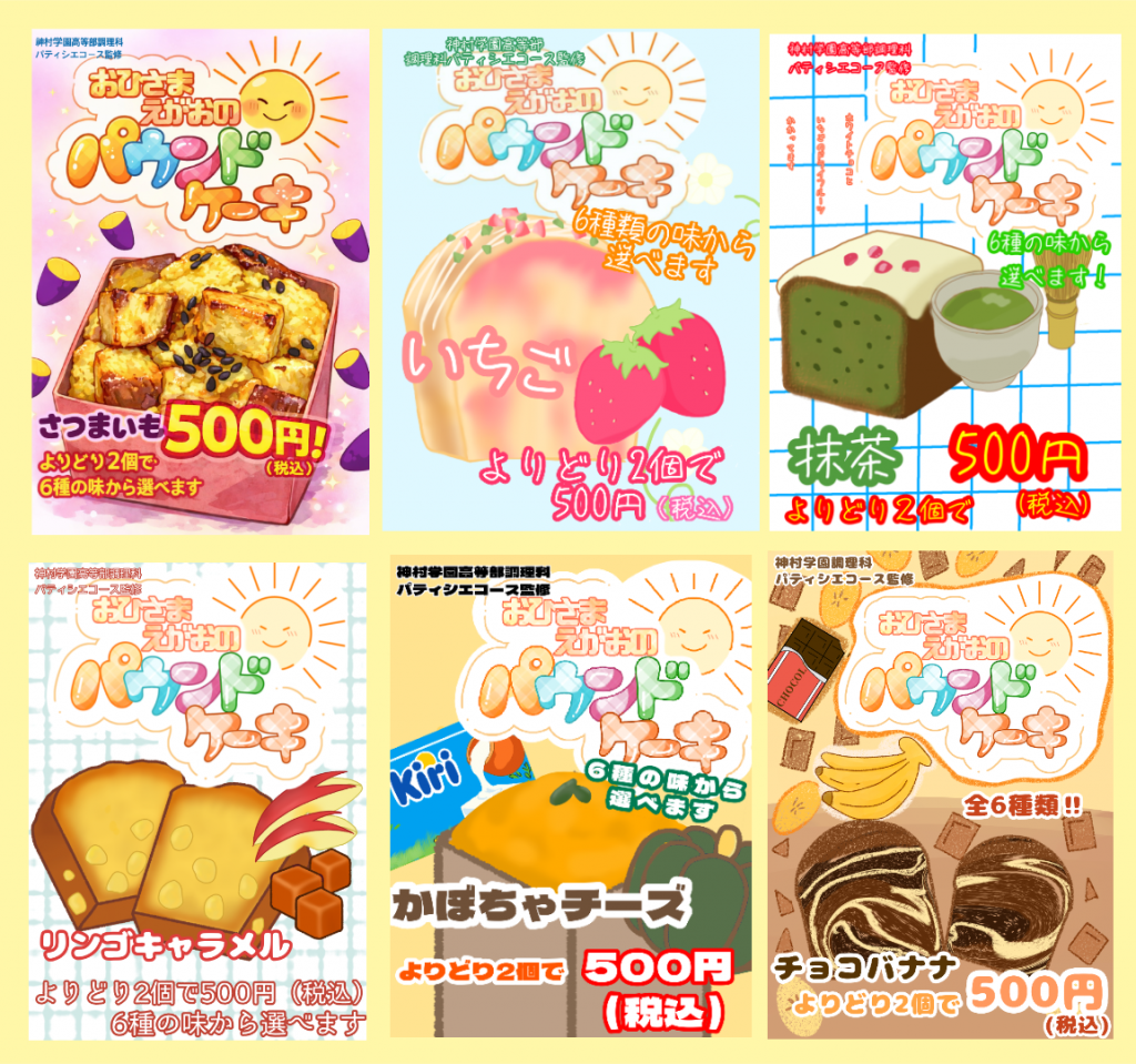 2.22(予告)☆調理科パテ1年生☆ 今年も『てゲハイ』に出店します! 2026.02.19高等部 お知らせ 『てゲてゲハイスクールフェスティバル』に出店します! 調理科パティシエコース1年生が、心を込めて作ります。 ぜひ、遊びに来てください!!✨✨ 日 時:2月22日(日)10時30分~ 場 所:鹿児島中央駅 若き群像前広場 商 品:おひさま えがおの パウンドケーキ(6種類) 価 格:よりどり2個で500円 公式HP👉てゲてゲハイスクールフェスティバル2026