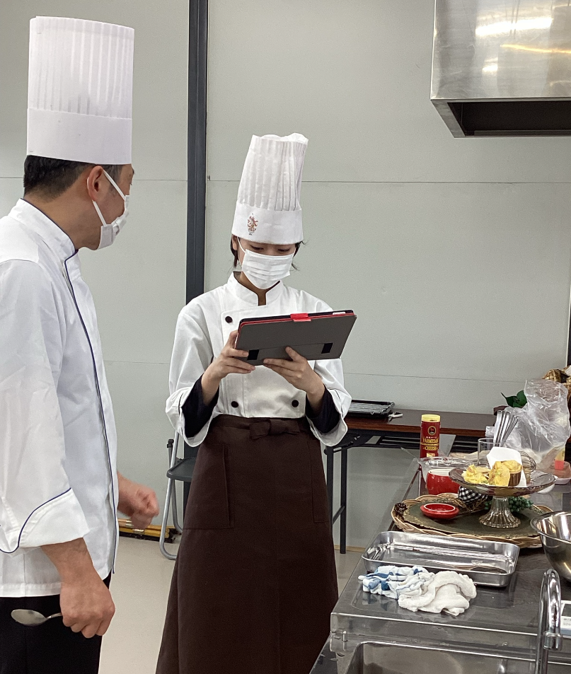 鹿児島サンロイヤルホテル スカイラウンジ フェニックス料理長 天川伸也シェフに 全国大会に向けて ご指導を受けています。 がんばれ~