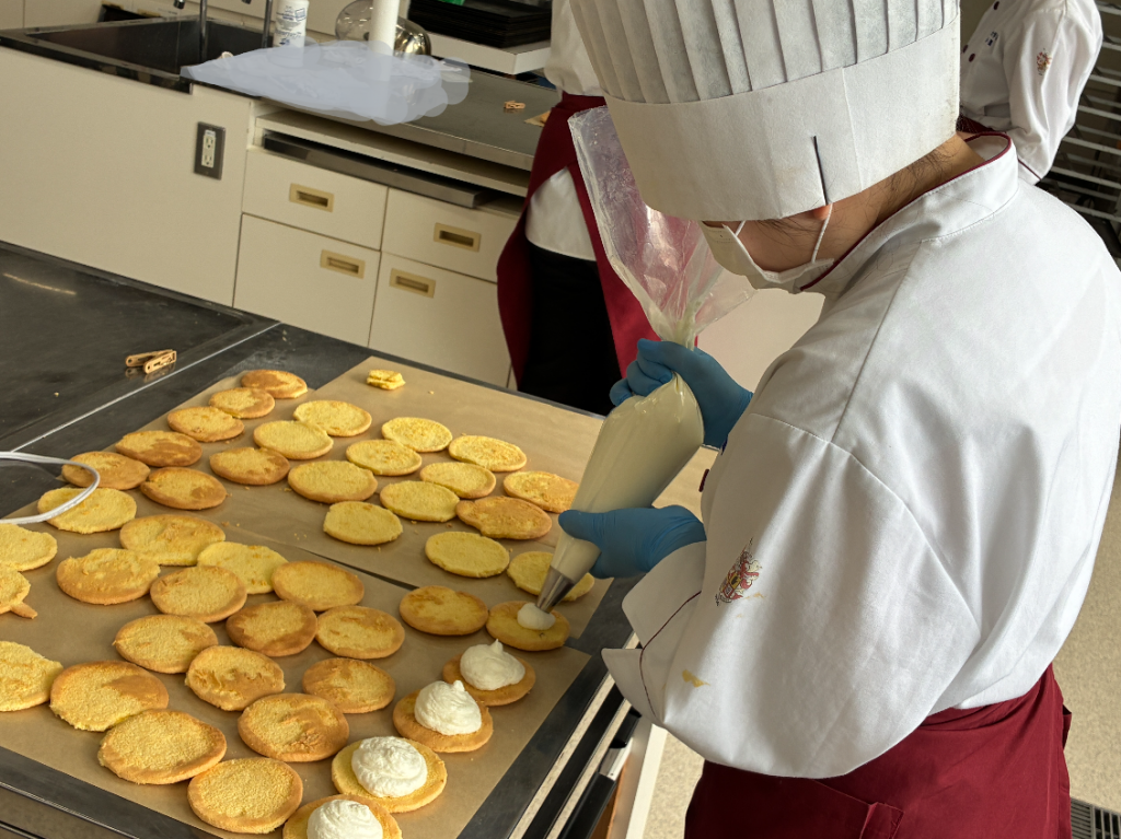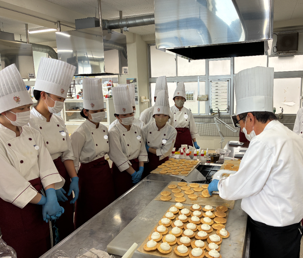 4.17 ☆R8 調理科☆ パティシエコース2年生 🍰洋菓子実習🍩開始 2026.04.17高等部 お知らせパティシェコース・パティシエ部調理科 2年生パティシエコースは,外部講師の松下先生(モン・シェリー松下)より 毎週金曜日に 洋菓子作りの指導を受けています。 本日は クグロフ・チーズブッセ に挑戦中