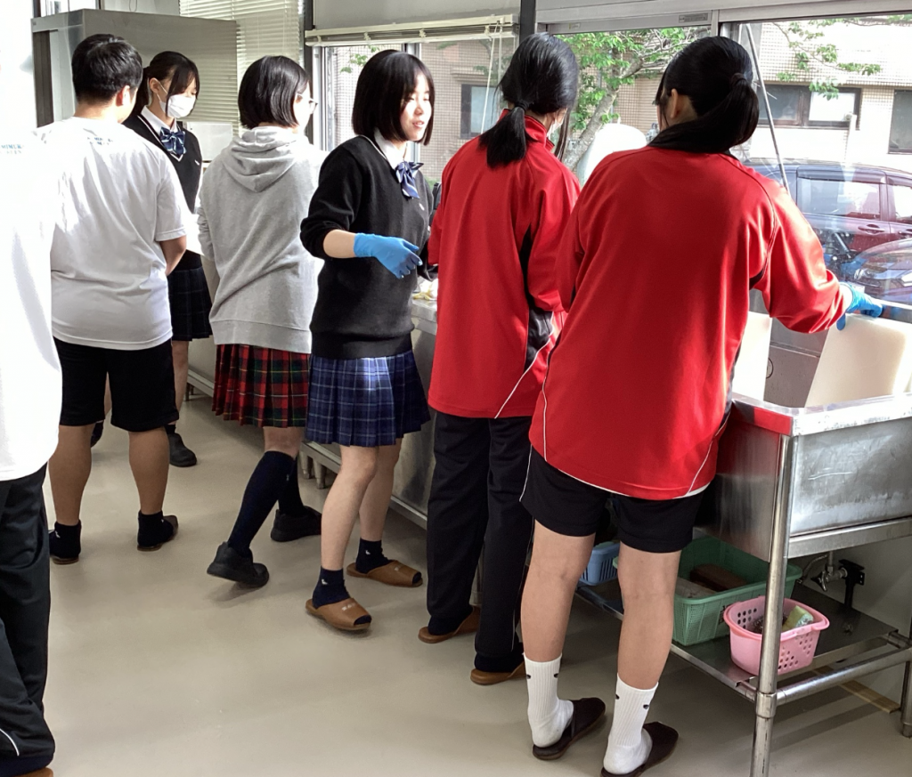 4.21 ☆調理科☆放課後の風景 先輩から後輩へ 片付け方を伝授中💕 @調理実習室 2026.04.21高等部 お知らせ調理科 初調理実習で 時間内に片付けが終わらなかったため 放課後 2年生が片付け方をやさしく教えています!すばらしい まだ実習着が届いていないため体操服やジャージを着ているのが1年生 その横にいるのが(調理コース)2年生 調理部2年生は 1年生の実習の片付けを 進んでお手伝い中 先輩方,ひとつひとつ教えてくれて ありがとうございます。これからも いろいろと教えてください。 よろしくお願いします。