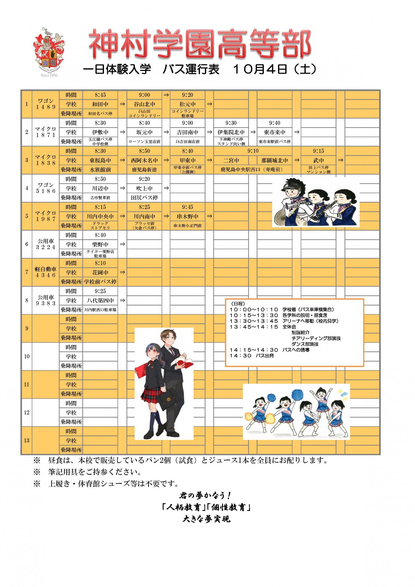 高等部 一日体験入学(10月4日)バス運行表🚌