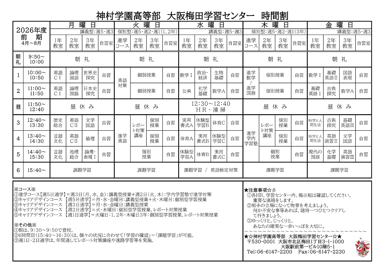 「週5日通学」、「週1~2日通学」、