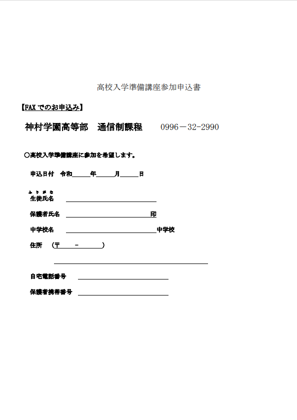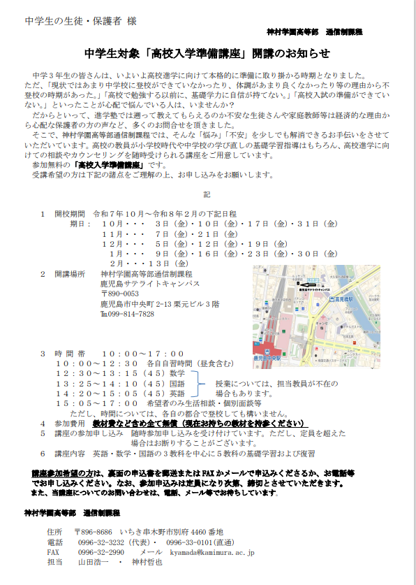 そこで神村学園通信制課程では、「高校入学準備講座」を開催します!