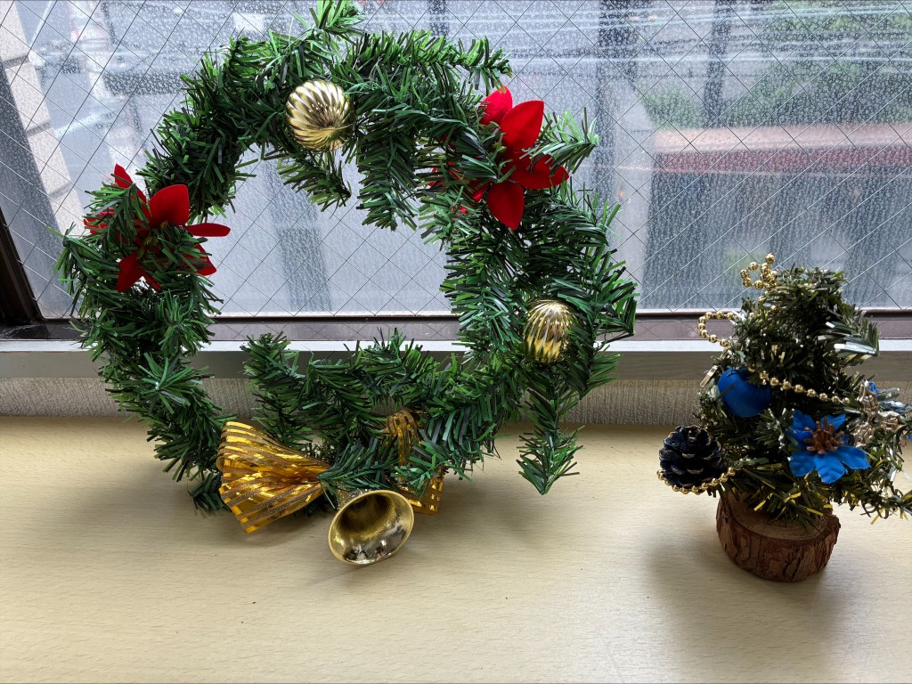 各階にもツリーやリースを置いているので、来校の際にはぜひ探してみてください。