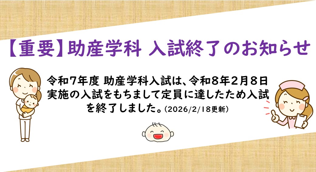 【重要】令和7年度 助産学科 入学試験(令和8年4月入学)終了のお知らせ