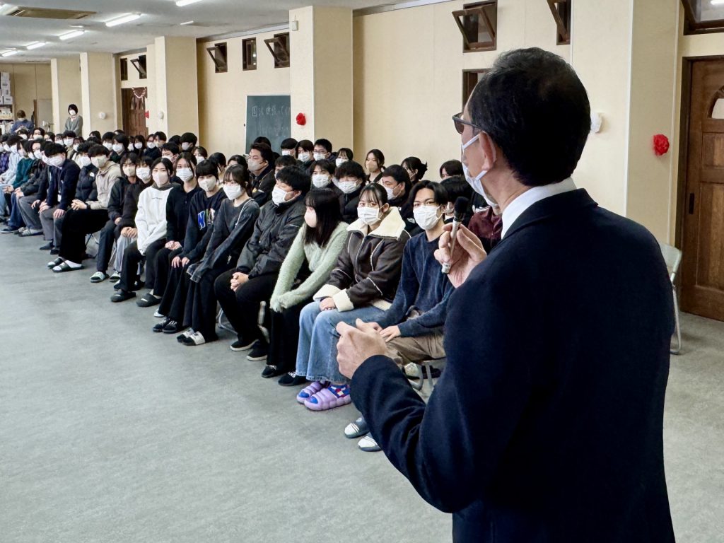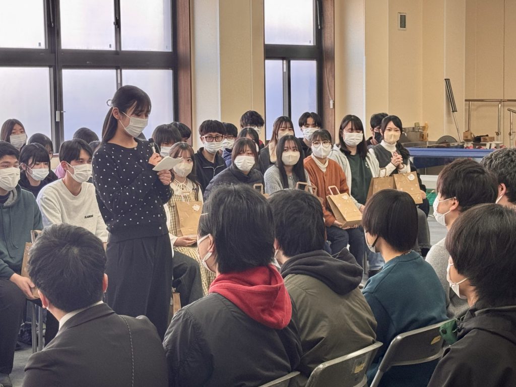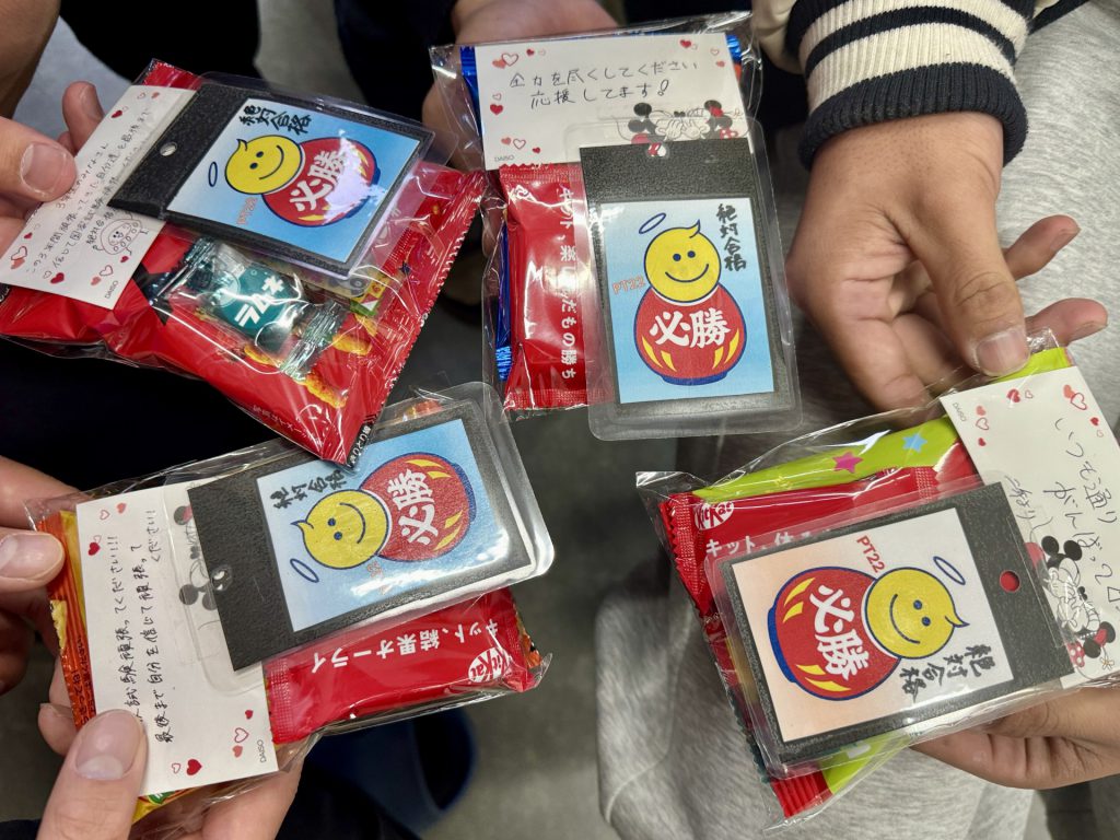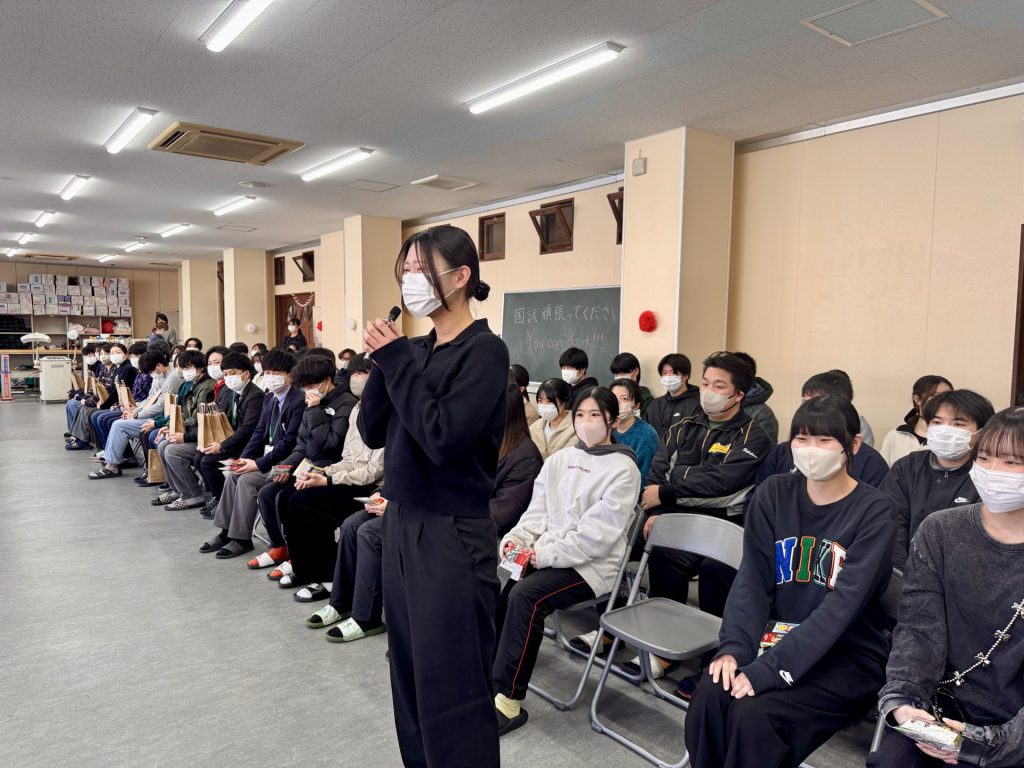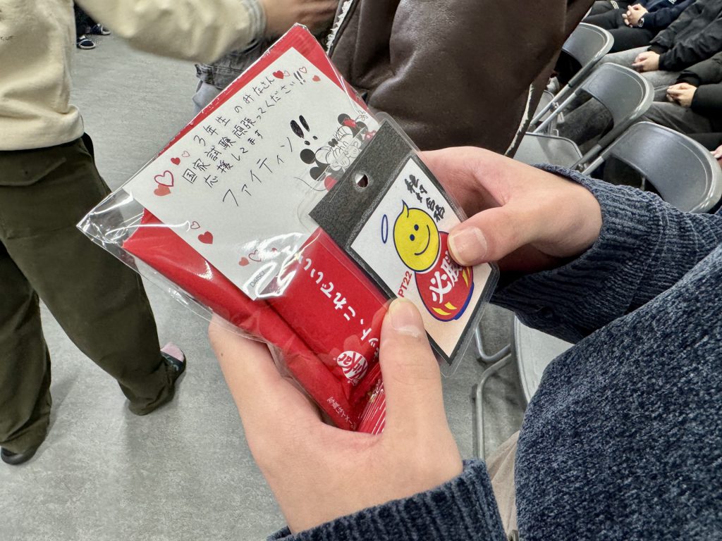 副校長先生の挨拶をはじめ、後輩からの応援メッセージやプレゼント、そして先輩から意気込みのメッセージ、最後は花道を受験生に歩いてもらいました。終始和やかな雰囲気でした(フフフ)