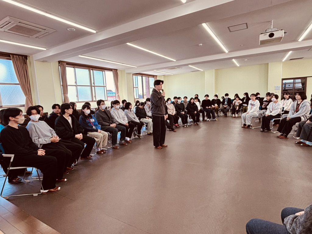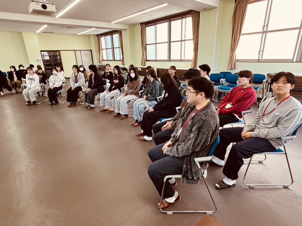 1年生 → 2年生 → 3年生 → 教員(学生による紹介)と続く自己紹介🩷趣味や頑張っていること、そして1年生への温かいメッセージがたくさん聞けました📝