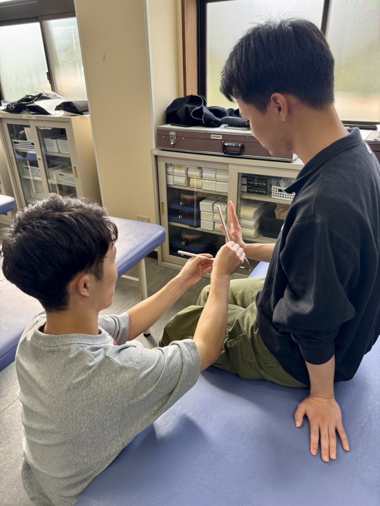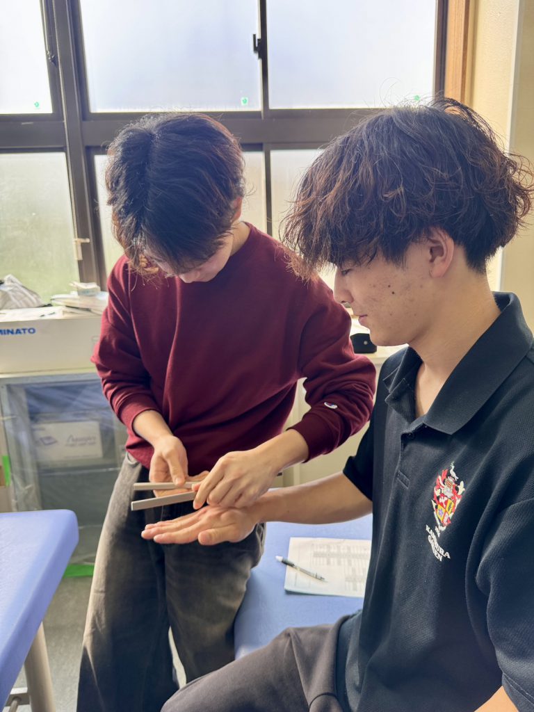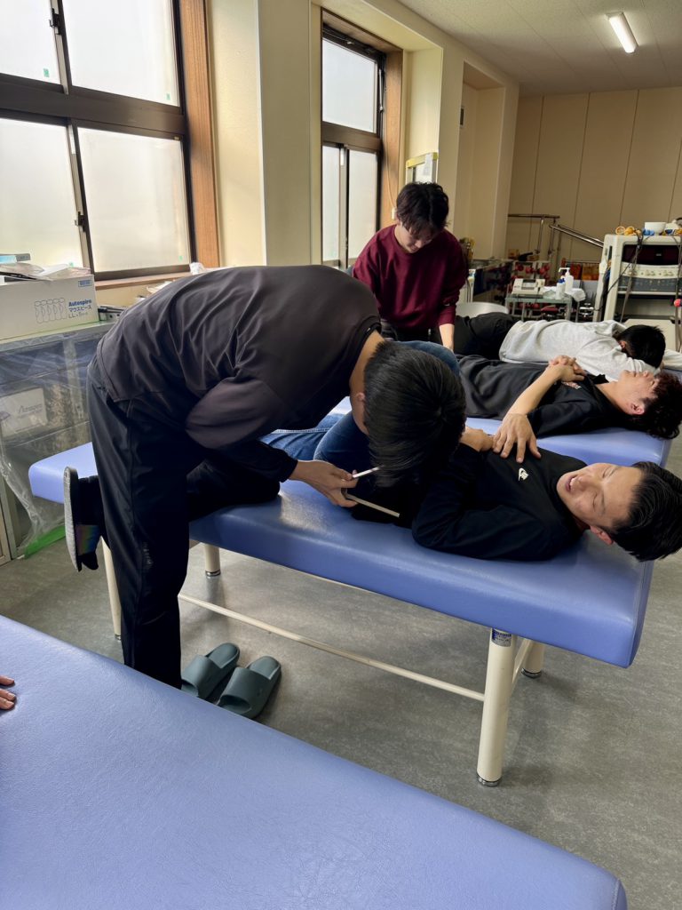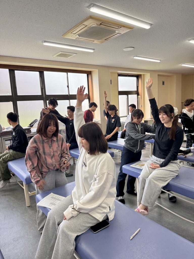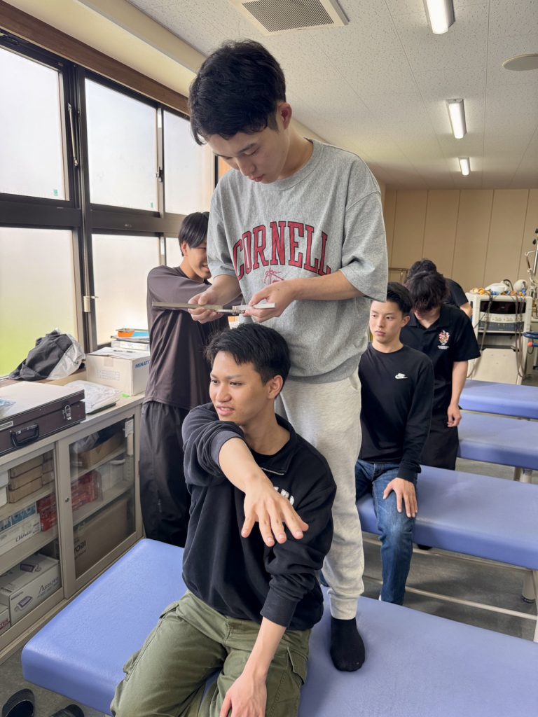 神村学園専修学校 理学療法学科2年生 実技実習 2026.04.20専修学校 お知らせ 夏にある病院実習に向けて検査の練習が始まりました!1年で覚えたはずの検査方法もだいぶウロ覚えに…夏までに間に合うのか………… きっと間に合うはず!!やかぜの精神で頑張ります!!