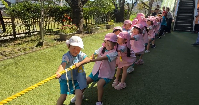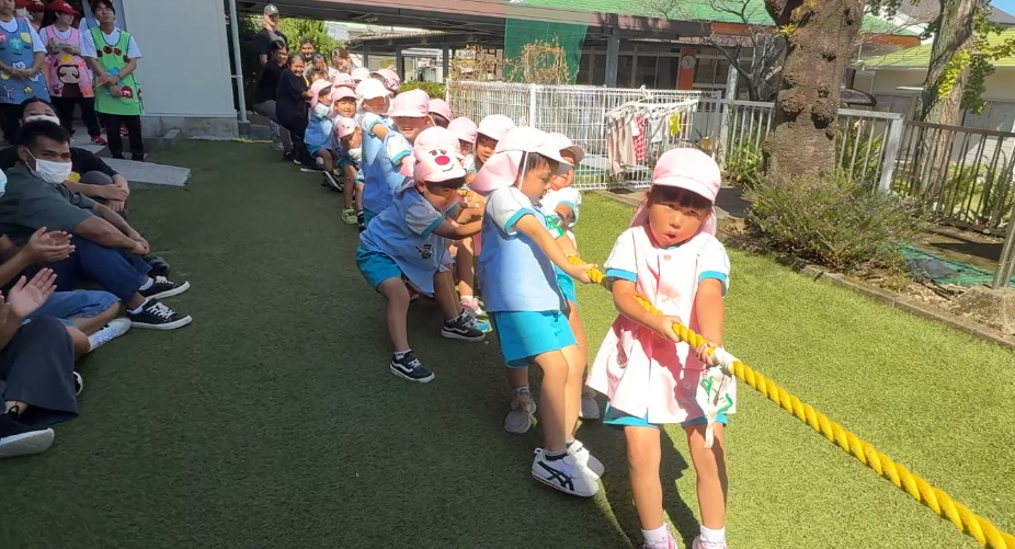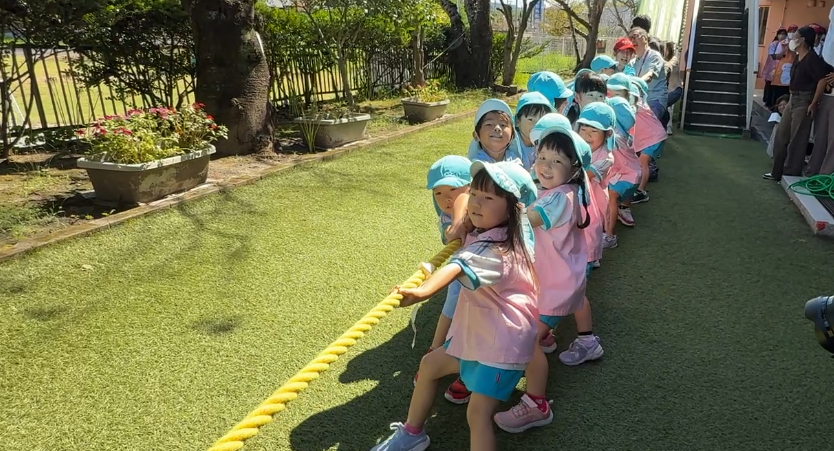 日本語学科のお兄さん・お姉さんたちと綱引きもしましたよ!